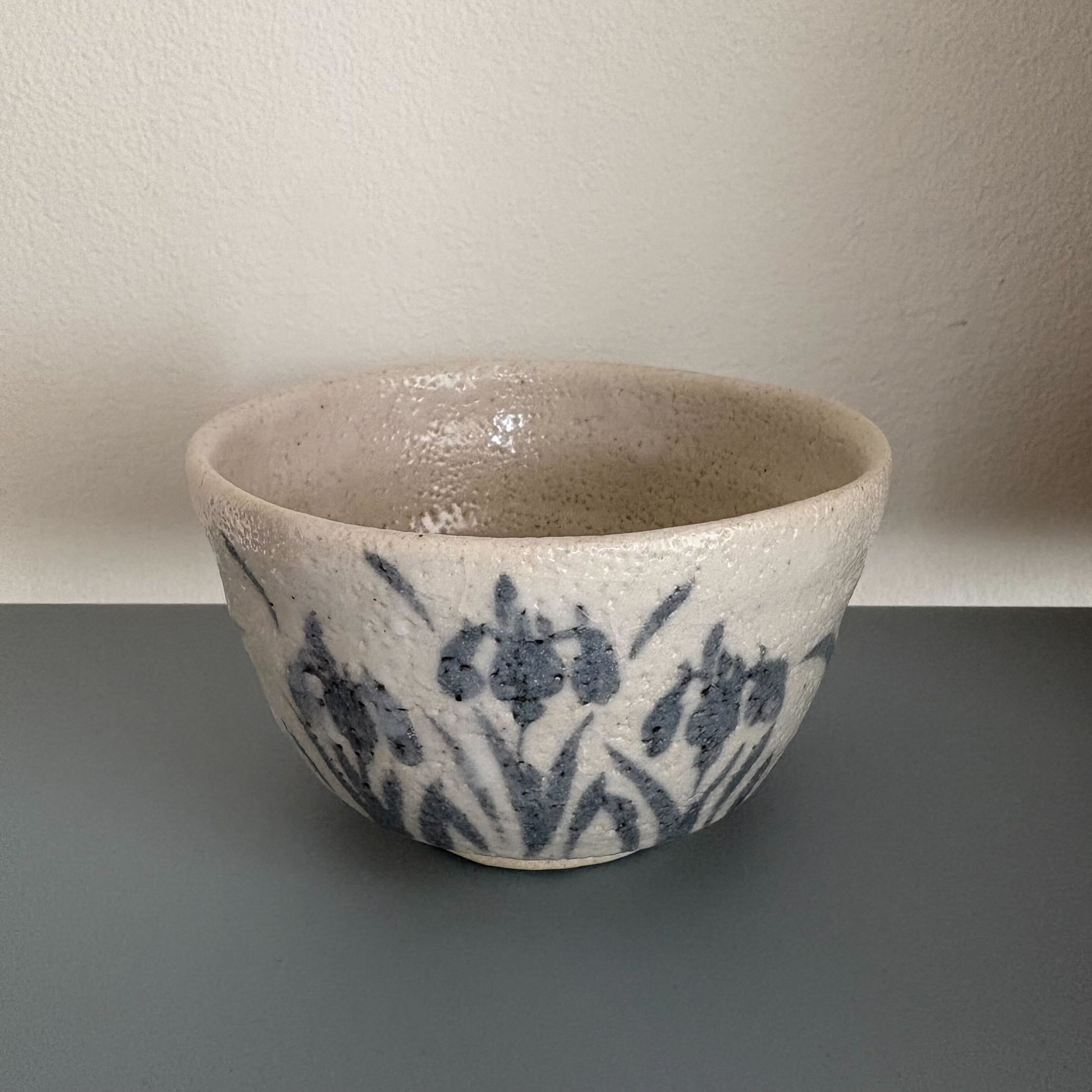 The iris (Shobu) depicted on this tea bowl is a flower associated with early summer (May–June in Japan). It traditionally symbolizes protection from evil, the avoidance of misfortune, and wishes for healthy growth.